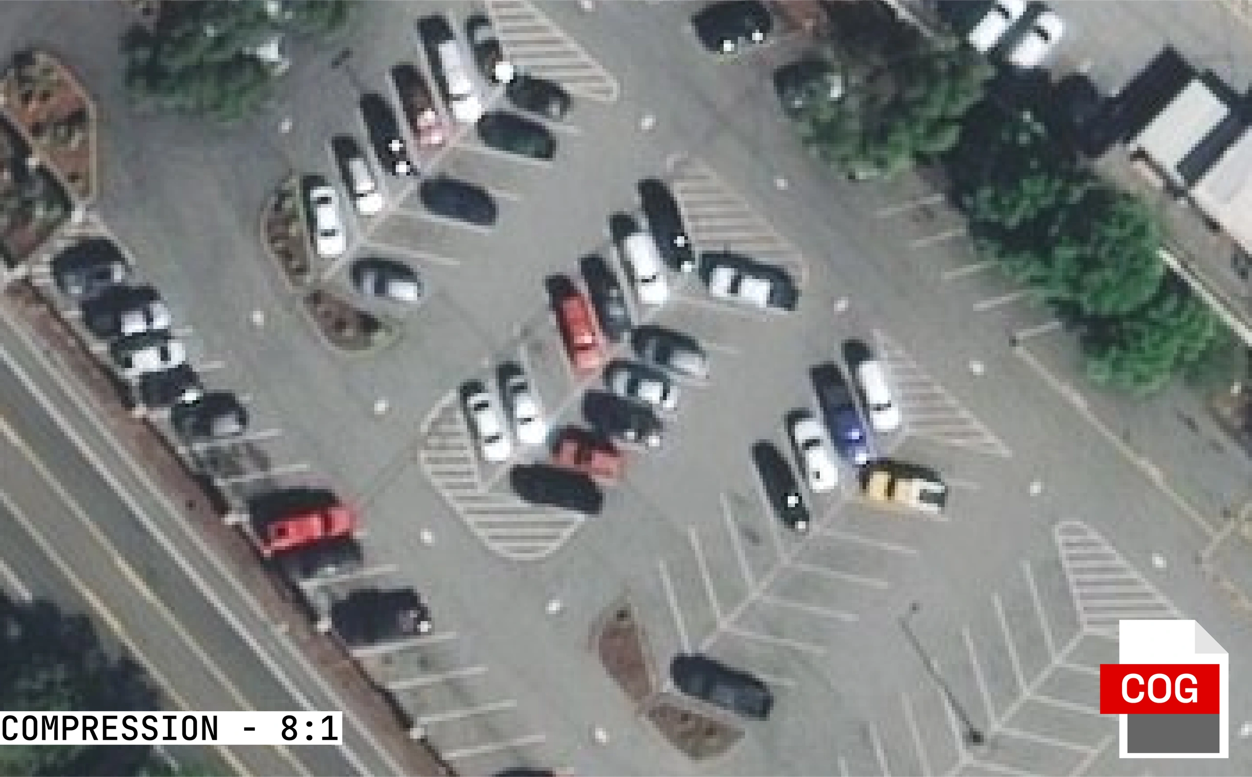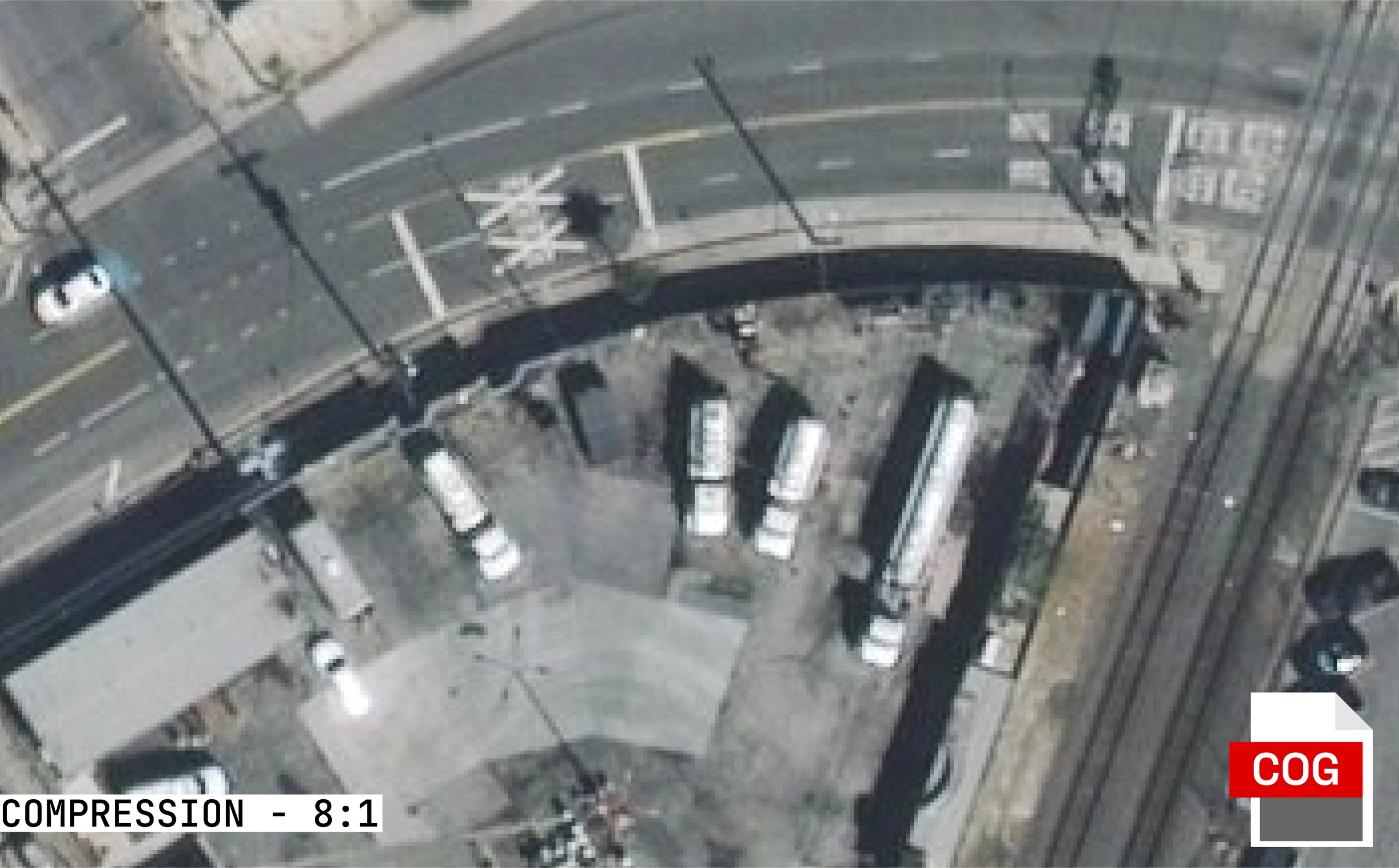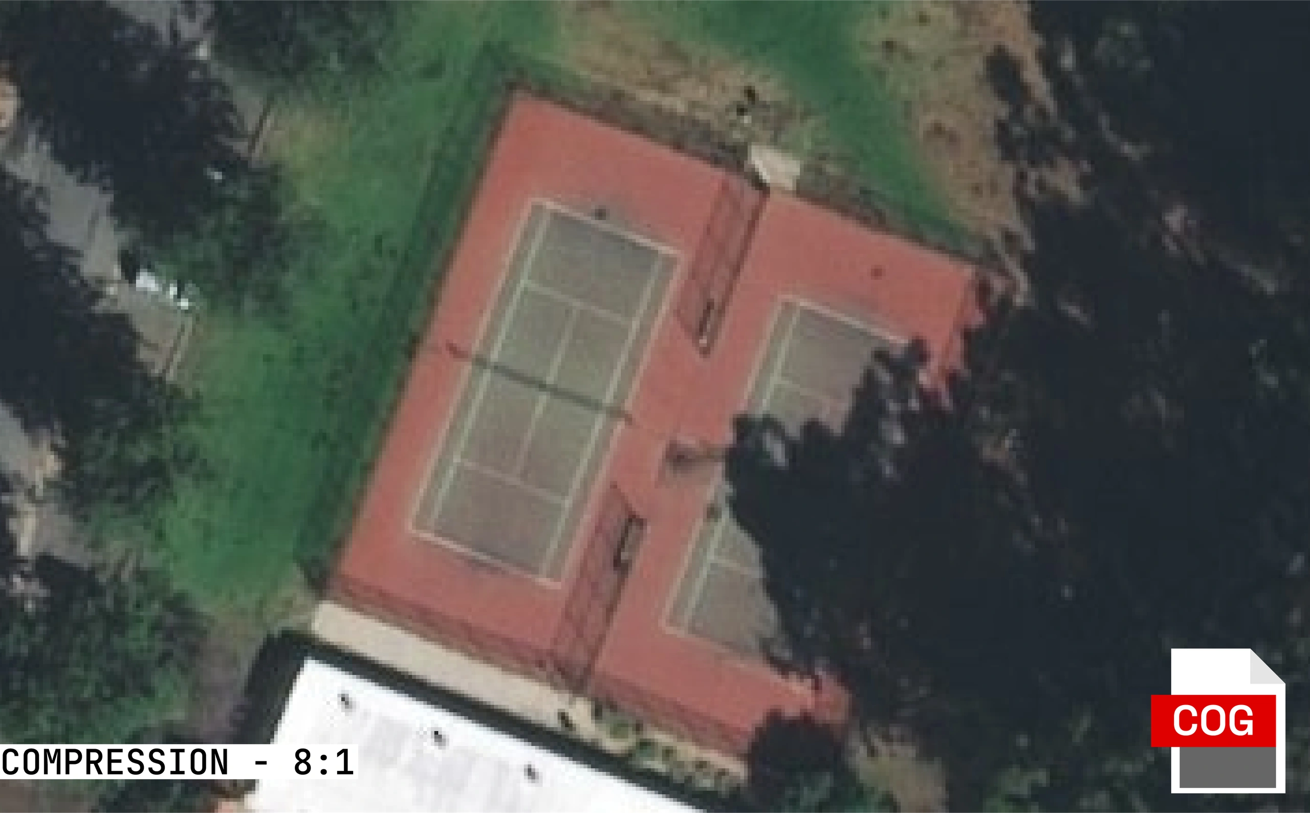 ECW's wavelet compression achieves smaller file sizes than COG while maintaining visual quality for most use cases. SpaceEye-T imagery courtesy of KARI / SIIS; processed by Terrabit.