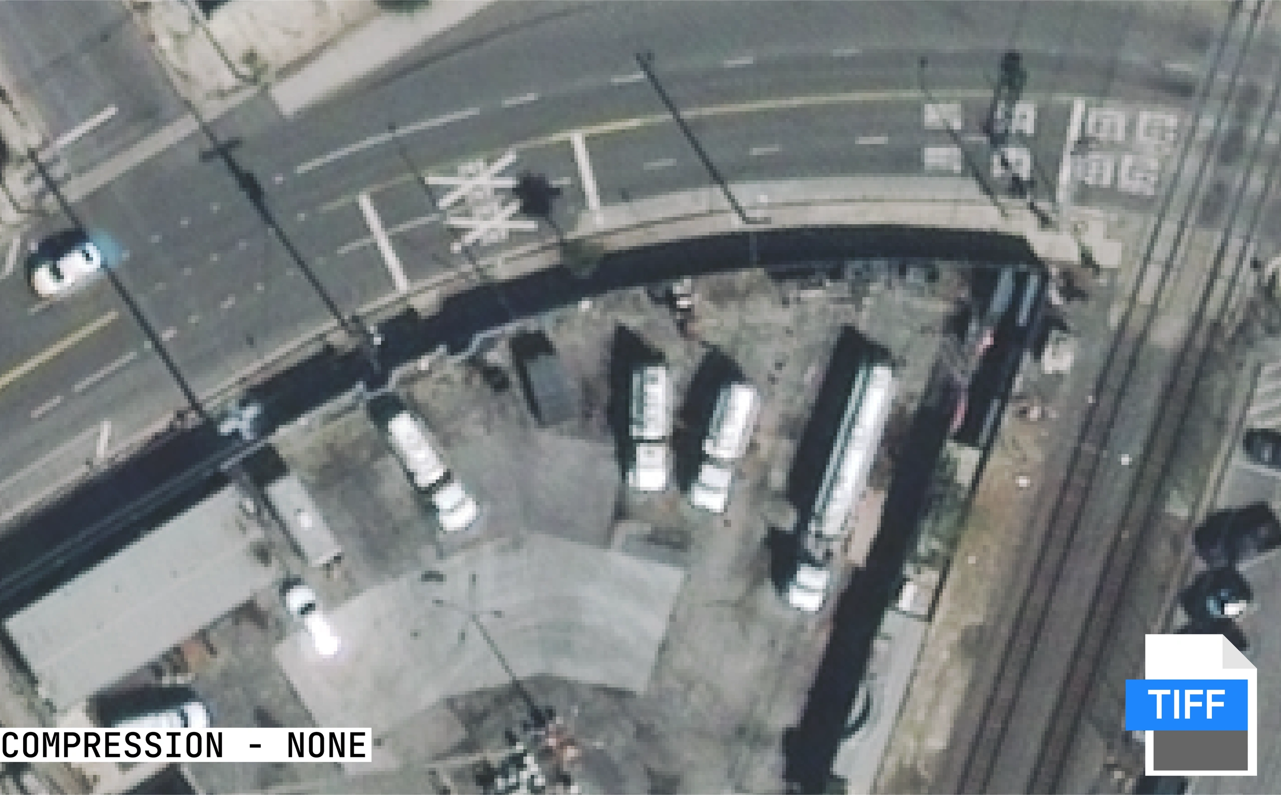 Visual comparison of different geospatial file formats and compression ratio. SpaceEye-T imagery courtesy of KARI (Korean Aerospace Research Institute) / SI Imaging Services (SIIS); processed by the Terrabit team.